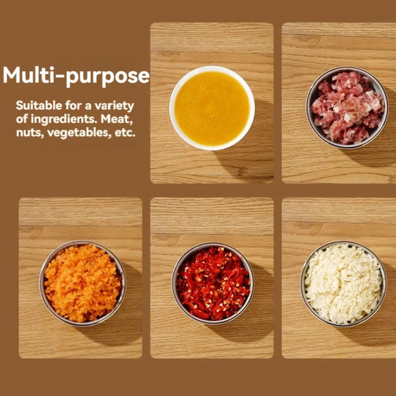 Equipped with a rechargeable USB battery, this chopper is cordless and portable, making it easy to use anywhere in the kitchen or even for outdoor cooking. Simply charge it via USB, and you’re ready to chop efficiently without being tethered to a power outlet.